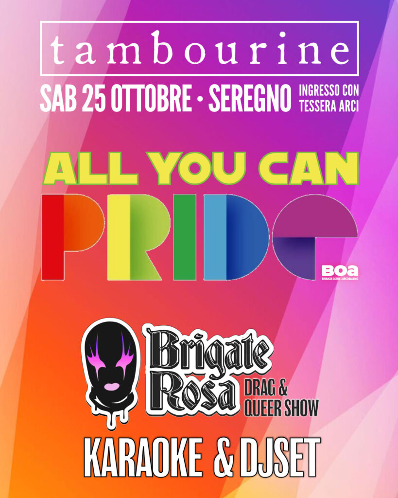 E perché ogni ingresso contribuisce a finanziare il Brianza Pride e i progetti sociali dell’associazione BOA – Brianza Oltre l’Arcobaleno.