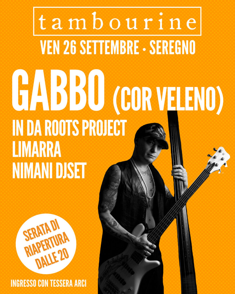 Serata di riapertura – Gabbo (Cor Veleno) – In Da Roots Project – Limarra – Nimani Djset